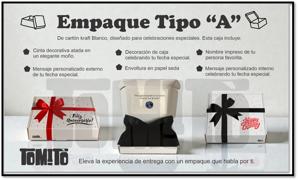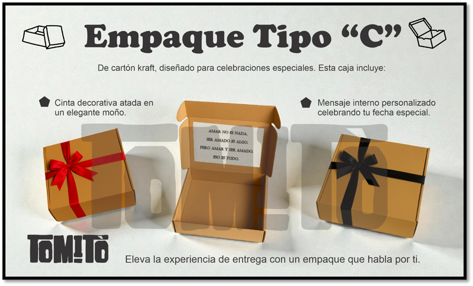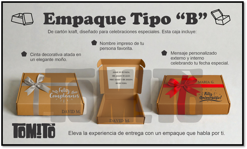 La personalización es más que un servicio: es nuestra manera de decirte que cada detalle importa. Ya sea en el empaque o en el mismo producto, queremos que tu experiencia con TOMITÓ sea tan especial como tú.